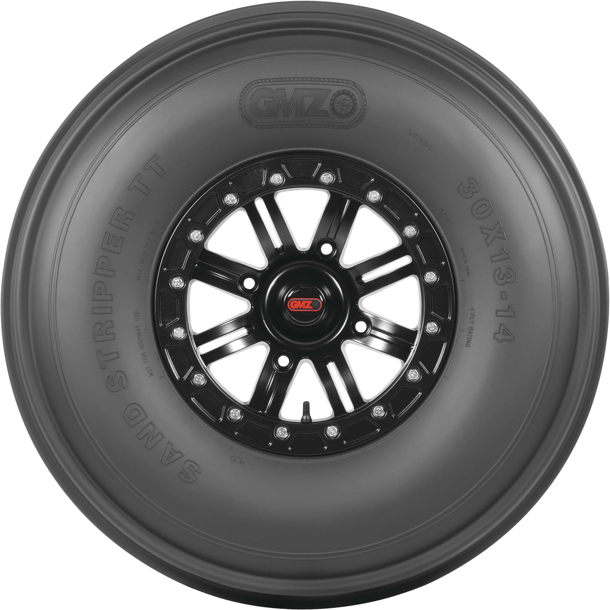 GMZ Race Products Sand Stripper and Sand Stripper TT Tires feature an extra wide footprint that provides maximum flotation and smooth dune transitions. Thick rim guard material keeps sand out of the bead while protecting wheel lip and the tough bias construction delivers long lasting durability. Front tires are available in the original Sand Stripper design with concaved tread ribs for responsive steering or the TT design that combines concaved tread ribs with a lateral traction block, maximizing the all-wheel drive power to climb steep hills faster. Rear tires are available in deep cut models designed for naturally aspirated machines, delivering extreme acceleration or staggered paddle models for smaller performance machines.