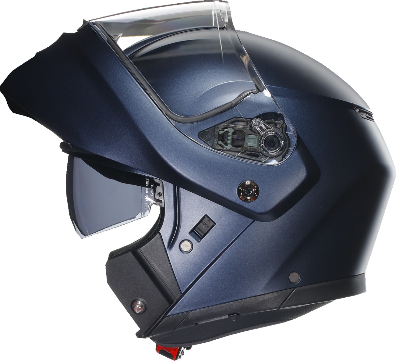 The visor is anti-scratch and includes a Pinlock® 70 MaxVision™ insert for clear vision with a 190° horizontal field of view. The integrated anti-scratch sun visor is removable without tools, and an Extra Quick Release System and micro-opening system provide convenience. ECE 22.06 certified for safety compliance.