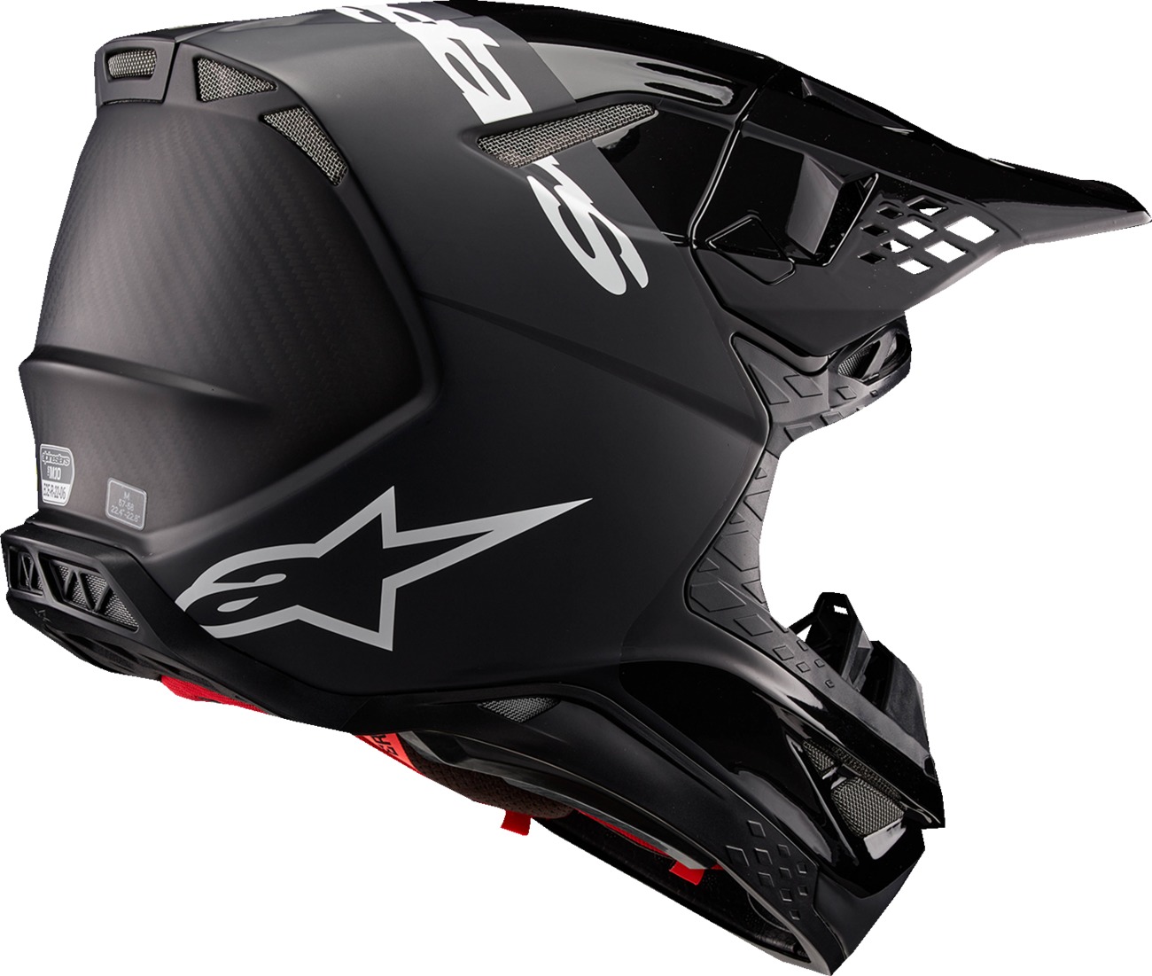The Alpinestars Supertech M10 Flood MIPS Helmet in Black/Dark Gray (Large) is engineered for advanced protection and top-tier comfort. With its aerodynamic carbon/aramid composite shell, the S-M10 offers reduced friction and streamlined energy transfer in impacts. The helmet features a unique collarbone relief zone, soft extended EPS liner, and an adjustable A-Head Fitment System for a personalized fit. Enhanced safety comes from ECE R 22.06 / DOT certification, a Multi-Directional Impact Protection System (MIPS®), and an Emergency Release System (ERS). The helmet boasts 28 ultra-ventilated intake and exhaust ports, a patented visor release system, removable cheek pads, hydration system compatibility, and includes a spare visor and helmet bag. Designed for adult motocross riders seeking the highest level of head protection and comfort.