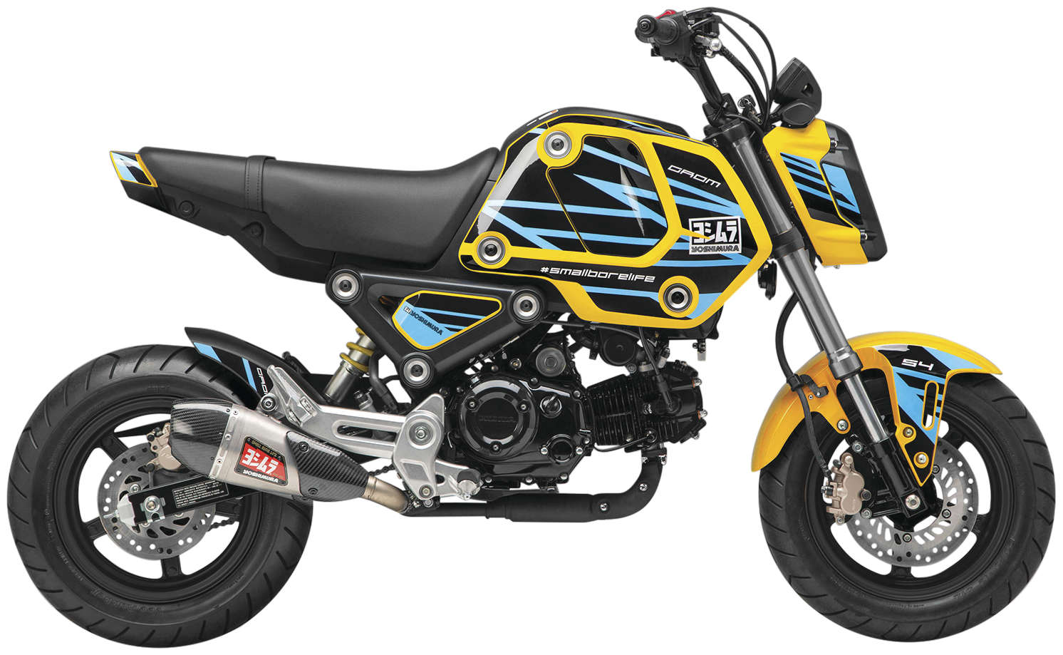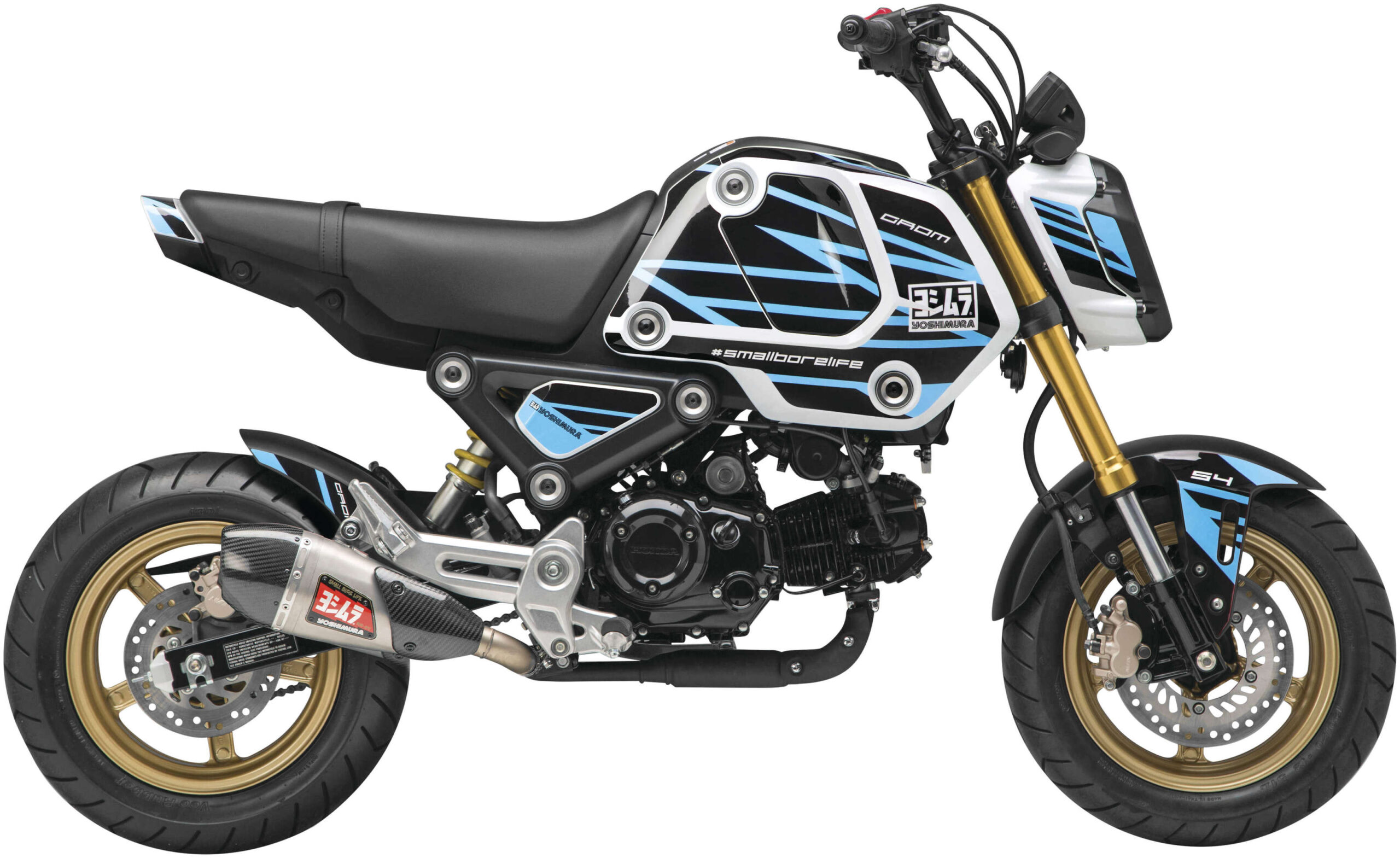 The new Yoshimura Graphic Kits contain 19 individual decals for the new Grom featuring Yoshimura’s own proprietary templates designed in house. Made right here in the USA from high-performance 12 mil air release material, these kits to go on super easy.