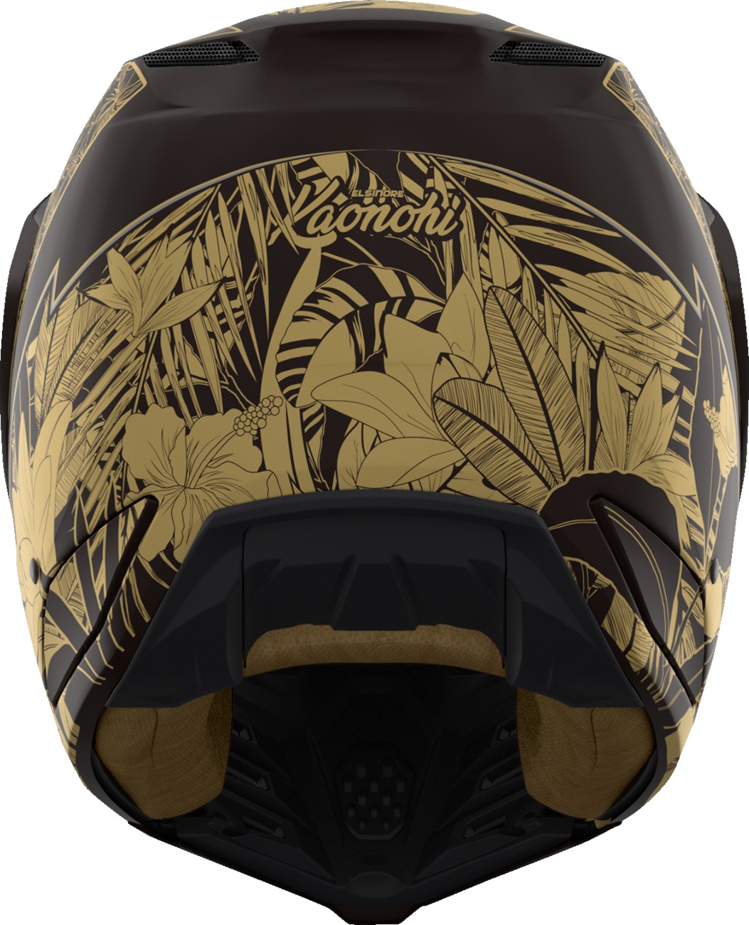 The ICON Elsinore Kaonohi Helmet is a lightweight, handcrafted FRP composite shell helmet designed for optimum strength and minimized weight. Its comfort-driven fit is optimized for most riders, and it features a removable modular face mask that acts as a barrier against wind and debris. The helmet includes a zero-distortion fog-free MX Shield™ integrated with the face mask, a premium comfort liner with moisture-wicking Hydradry™ and AX® Suede for a custom fit, and is upgradeable to the HelmLink™ Bluetooth® communication system (sold separately). It also comes equipped with a 25K Gold MX Shield™.