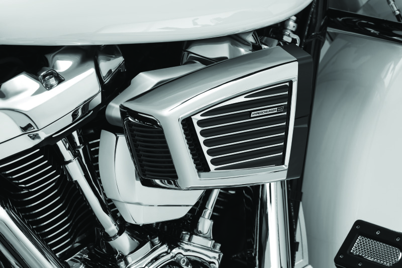 Give your Hypercharger™ ES an all-new look quickly and easily with this interchangeable faceplate. Features a clean retro finned design made from quality A380 aluminum. The black and chrome finish delivers a classic style upgrade for your ride. Designed specifically for the Kuryakyn Hypercharger™ ES, this faceplate is easy to install and built to last.