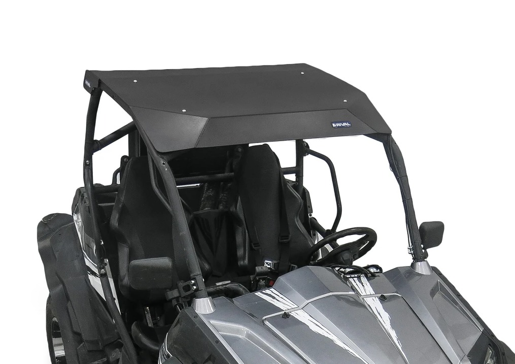 Upgrade your Polaris ACE 150 with the Open Trail molded roof, crafted from 0.375" HDPE (High Density Polyethylene) for superior strength and UV resistance. This roof is designed to mount securely using five galvanized steel, rubber-coated P clamps that bolt directly to the roll bars, ensuring a tight and durable fit. Perfect for keeping you protected from the elements while adding a rugged look to your UTV.