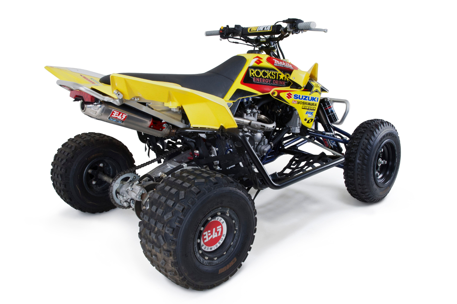 The deep, pleasing sound of the RS-5 is due to its four-sided trapezoidal muffler shape. The unique shape is aggressive looking and detailed, and it accentuates the lines of the Suzuki LT-R450 like no other pipe. But there’s more to this pipe than mere good looks. The high-flow, straight-through baffle design allows for maximum performance, while the stainless steel internals add durability and strength.
