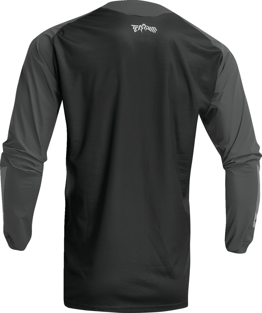 The Thor Terrain Jersey in Black/Charcoal (XL) is designed for off-road riders seeking comfort and performance. Featuring four-way stretch, abrasion-resistant sleeves, this jersey ensures durability and flexibility. Vented side panels promote airflow, while the moisture-wicking main body fabric keeps you dry during intense rides. Reflective graphics enhance your visibility in low-light conditions. The performance raglan-style sleeves and four-way stretch collar provide added mobility and comfort, making it ideal for demanding terrain.