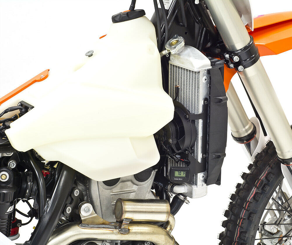 The Trail Tech TTO Temperature Switching Fan Kit, KTM 2016+ monitors your KTM cooling system performance and automatically activates the fan to keep engine at optimum temperature range.