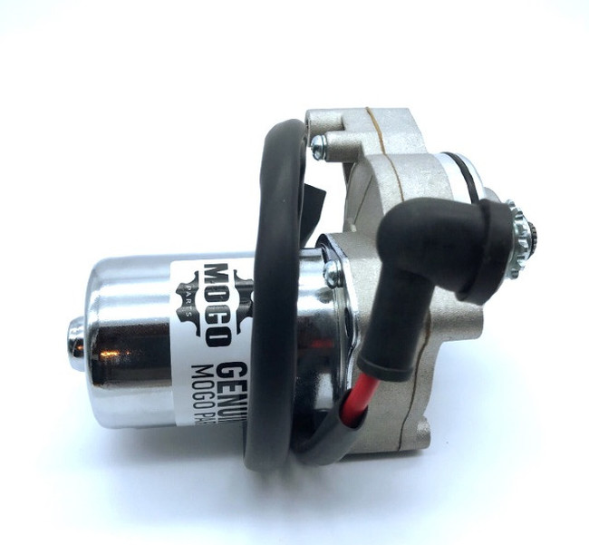 Includes wire to starter relay; approximately 15 inches long. Fits most Horizontal, 4 stroke Chinese engines (Gy6 clones) with upper or “above engine” mounted starters. Starter body diameter is about 2 inches and length is 5-3/4 inches. Fits many Apollo, E-Ton, Kayo, and other import ATVS.