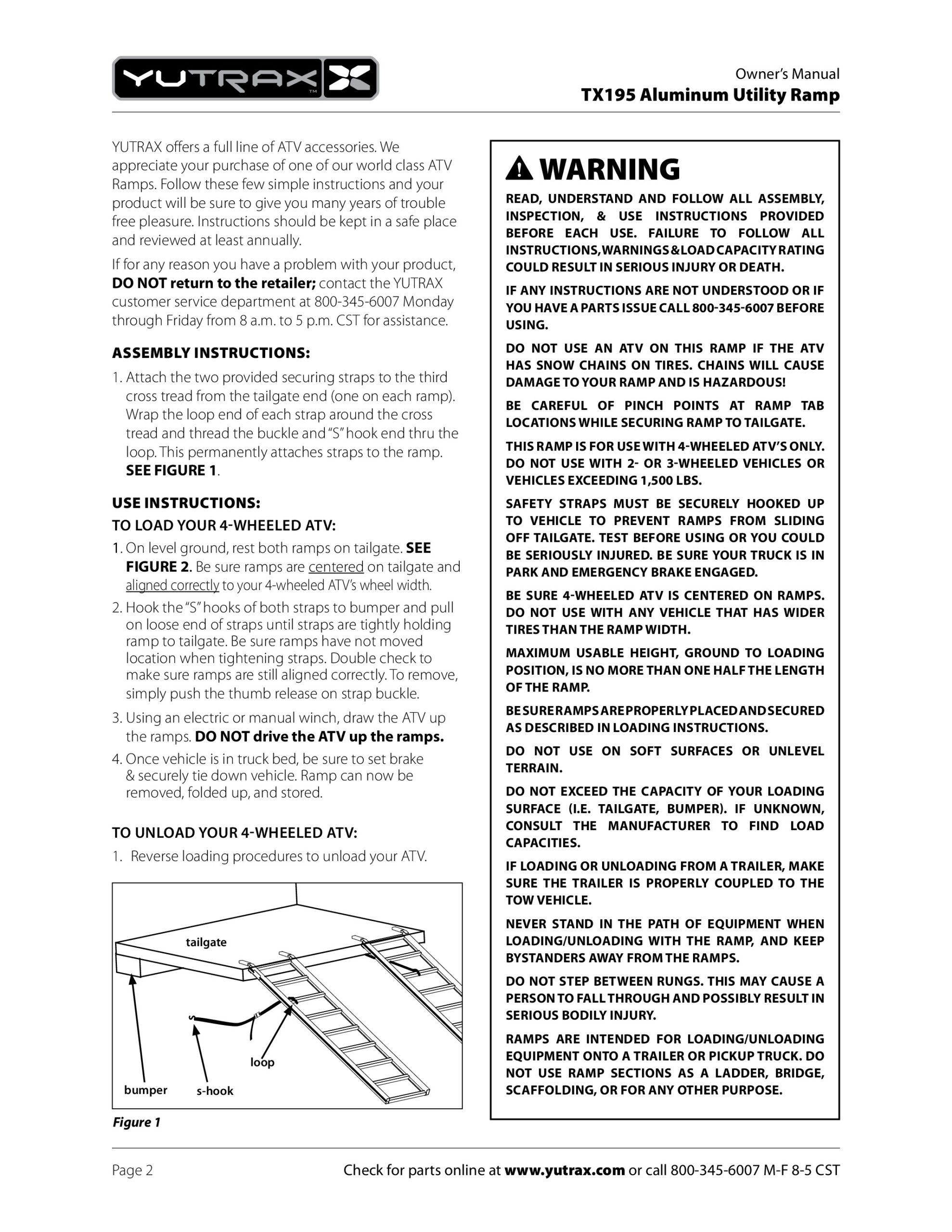 With Yutrax’s TX195 Aluminum Utility Ramp, you’ll have a versatile ramp that you can trust to help load your ATV. The strong, lightweight design makes these ramps a great option for loading ATVs. Made of fully-welded aluminum construction, this pair weighs only 17 pounds, with a total weight capacity of 1,500 pounds, and measures 69 inches long and 14.75 inches wide each. Ultralight Design – YUTRAX ramps are constructed from highly sturdy and resilient lightweight aluminum, making them easier to handle. Strong, Durable Construction – Our extruded rectangular side rails resist bending, and all sections are welded rather than riveted for extra strength. Added Security – Rubber tabs resist sliding and protect your vehicle and included security straps hold the ramps in place.