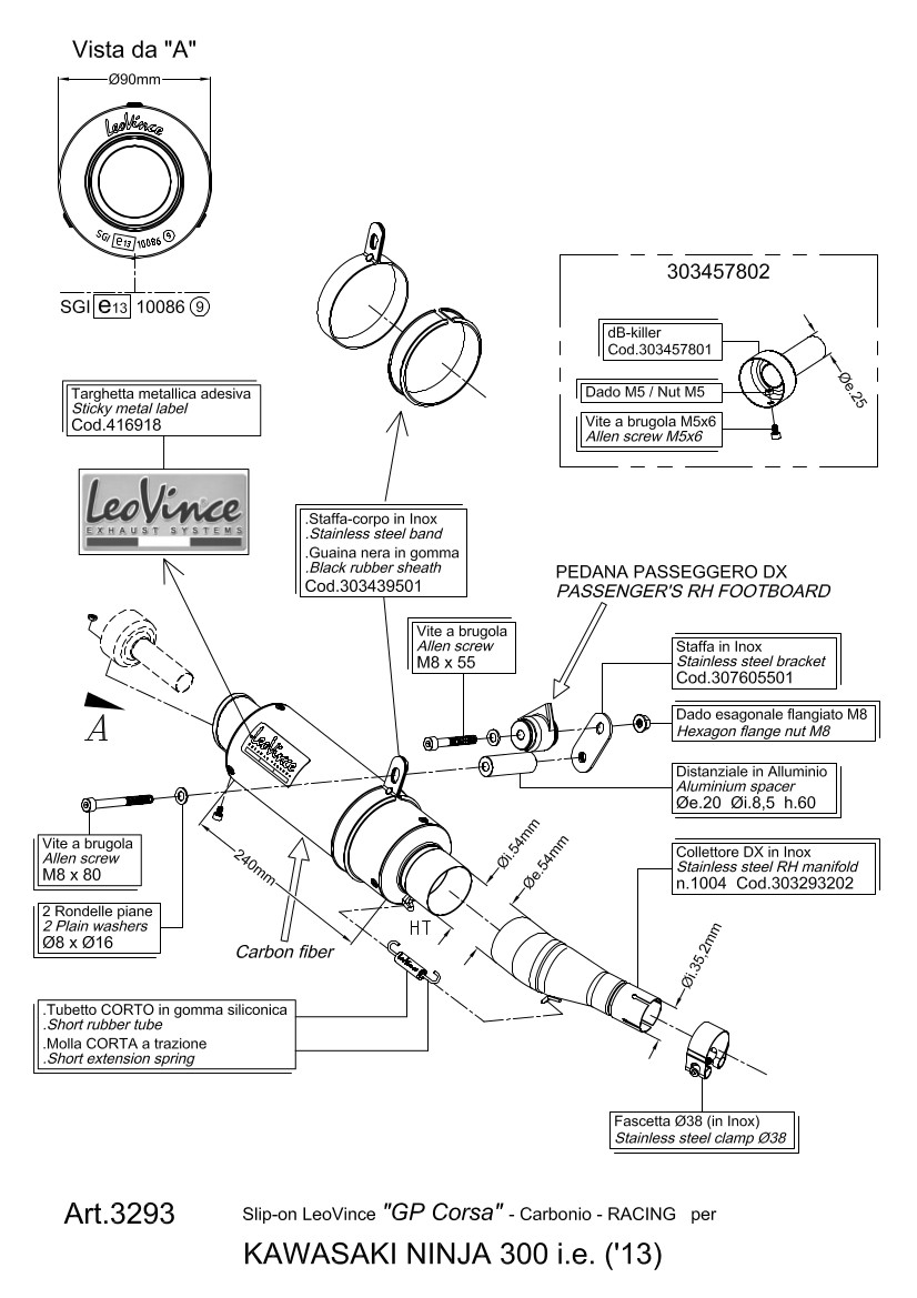 The LeoVince GP CORSA silencers offer the perfect balance between look, performance and price for the 4 stroke motorcycles up to 500cc. Inspired by the LeoVince experience in MotoGP, the design resumes the “Slash Cut” style which characterizes the premier class. To enhance the silencer, an alloy LeoVince logo has been applied which highlights the Italian product design.