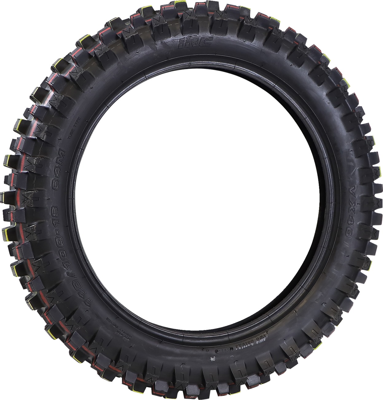 The IRC VX-40 Rear Tire in size 110/100-18 is engineered for high performance in intermediate to hard terrain. Designed with an optimized knob spacing for enhanced grip and an increased contact patch, this tire delivers superior handling and stability. Constructed with a lightweight 2-ply casing plus a breaker ply, it ensures both flexibility and durability. The new rubber compound balances performance with wear resistance, making it a top choice for off-road enthusiasts.