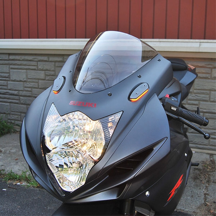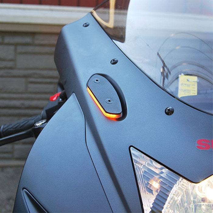 Looking to remove your stock mirrors? NRC now offers PLUG & PLAY mirror block off LED turn signals for the GSXR 600, 750, and 1000 models.
