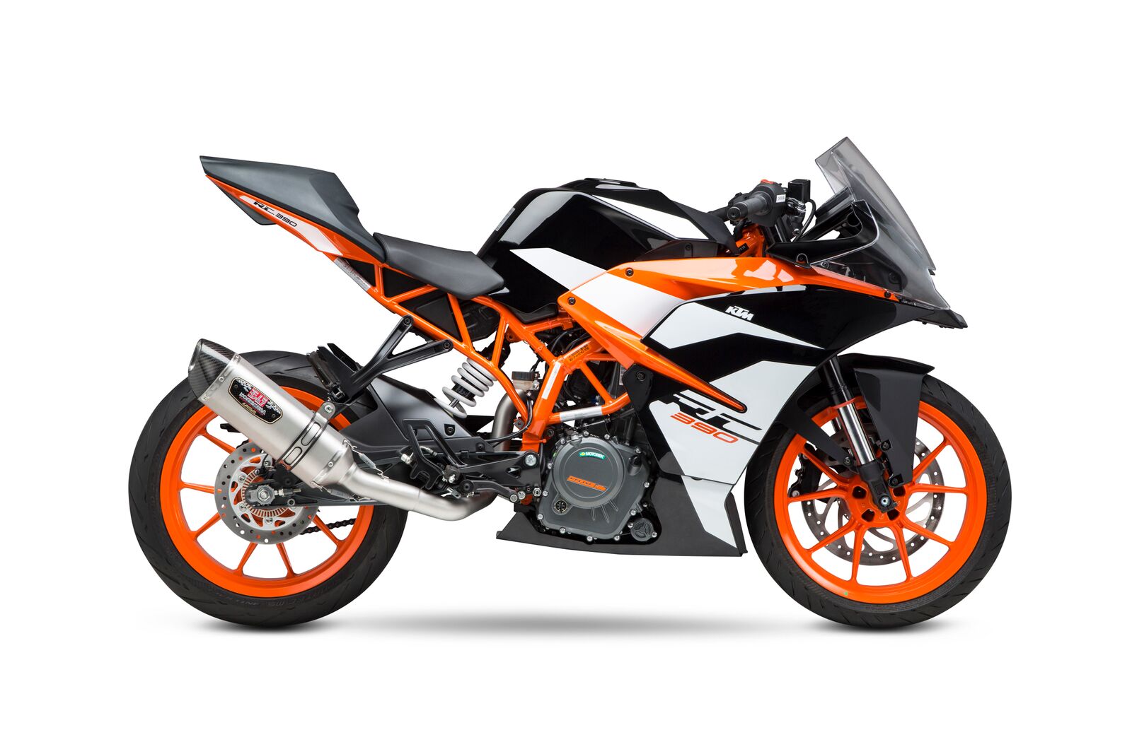 The KTM RC390 and 390 Duke are entry level bikes that can quickly be transformed into potent race bikes/track day machines. Yoshimura has pumped up the looks and performance on these small, yet fun bikes with our Race Series 3/4 systems in stainless/carbon Mini R-77 muffler options.