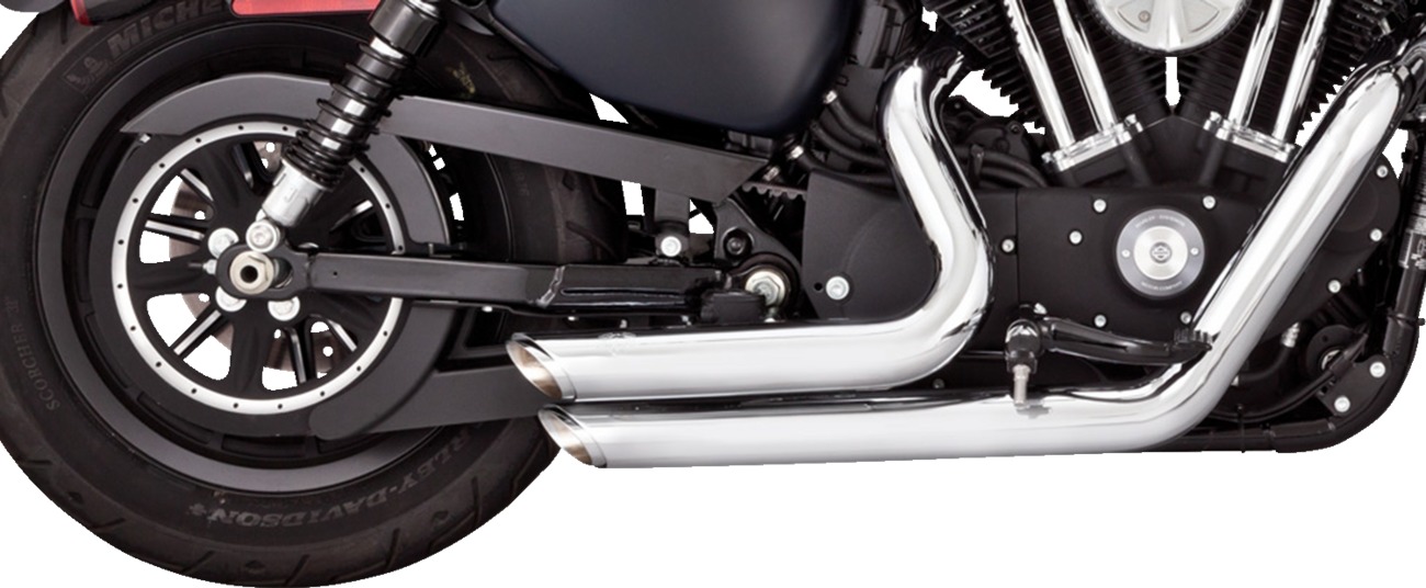 The Vance & Hines Shortshots Staggered Exhaust for 2014-2022 Harley-Davidson Sportster models delivers a bold look and aggressive sound. Featuring PCX™ (Power Chamber Exhaust) technology with a chambered high-flow catalyst cartridge, this system is designed to enhance torque and performance. The full-coverage heat shields provide a clean, sleek appearance while ensuring durability. This exhaust is 49-state emissions compliant and includes all necessary mounting hardware and installation instructions.