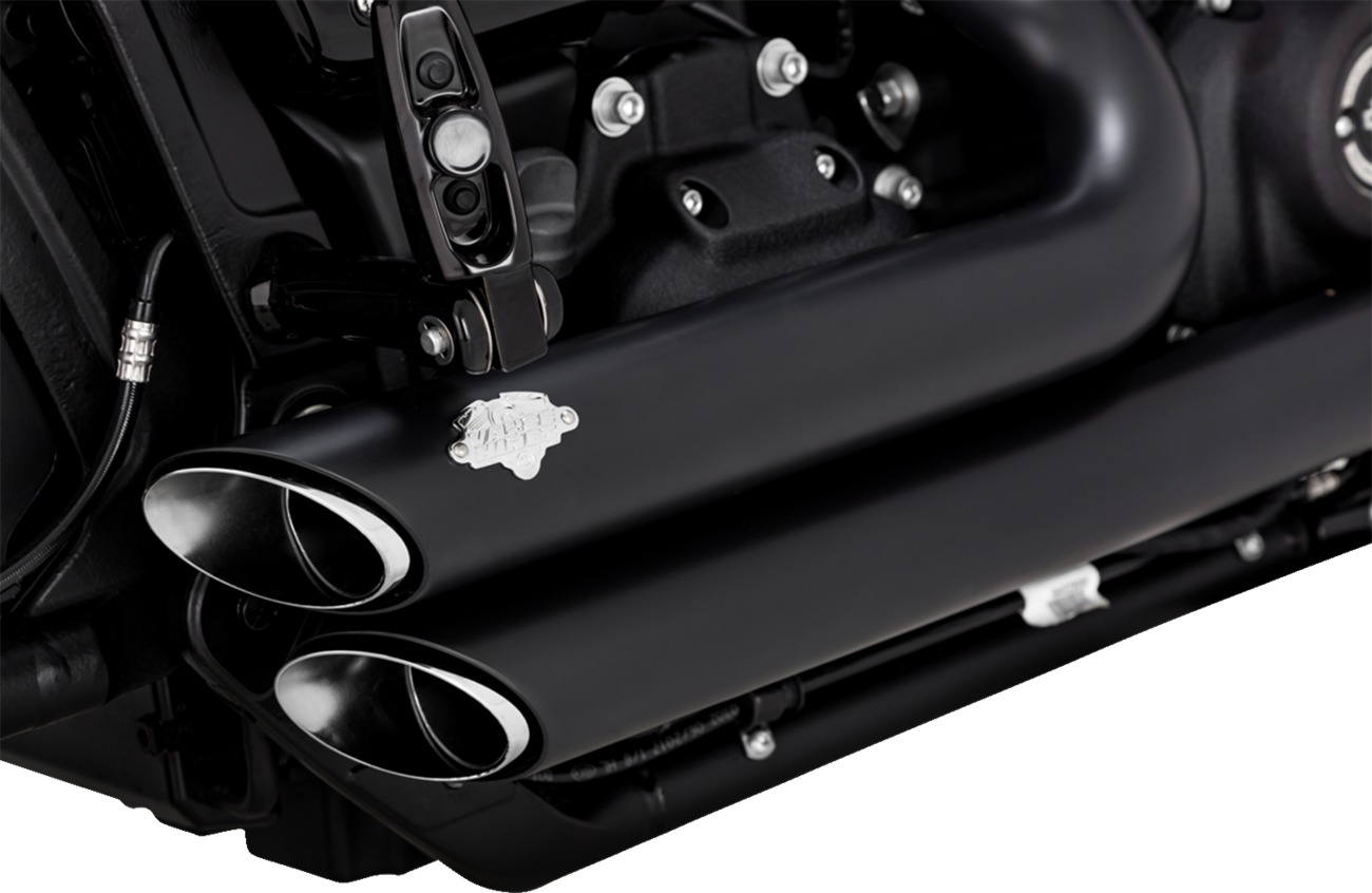 The Vance & Hines Shortshots Staggered PCX Full System Exhaust for 2018-2022 Harley-Davidson Softail models enhances performance and style with its sharp, clean design. Featuring PCX™ (Power Chamber Exhaust) technology and a chambered high-flow catalyst cartridge, this exhaust system improves torque and delivers an aggressive sound. It includes full-coverage heat shields for added durability and comes with all necessary mounting hardware and installation instructions. Additionally, it meets 49-state emissions compliance standards.